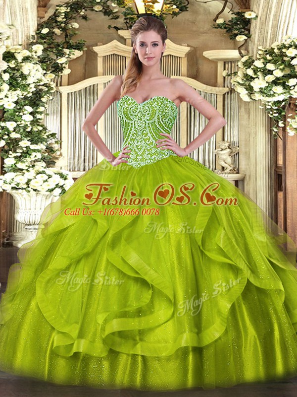 Sumptuous Floor Length Yellow Green Sweet 16 Dresses Organza Sleeveless Ruffles