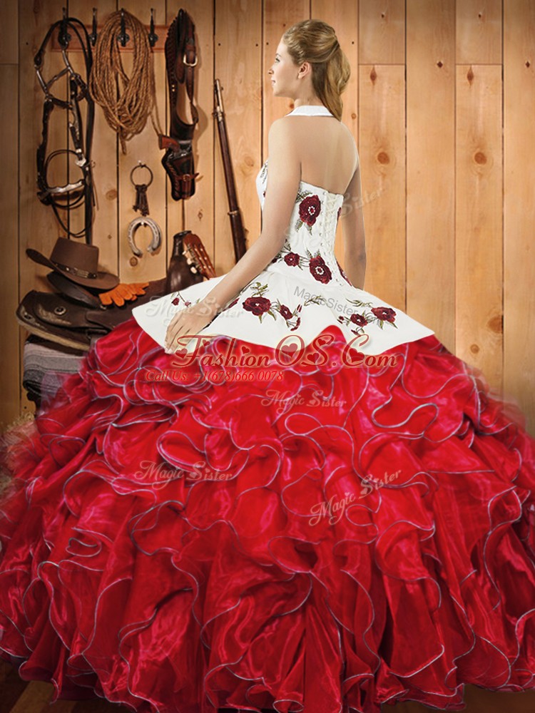 Blue And White Sleeveless Satin and Organza Lace Up Sweet 16 Dress for Military Ball and Sweet 16 and Quinceanera