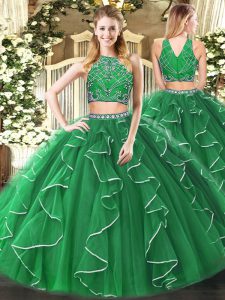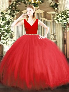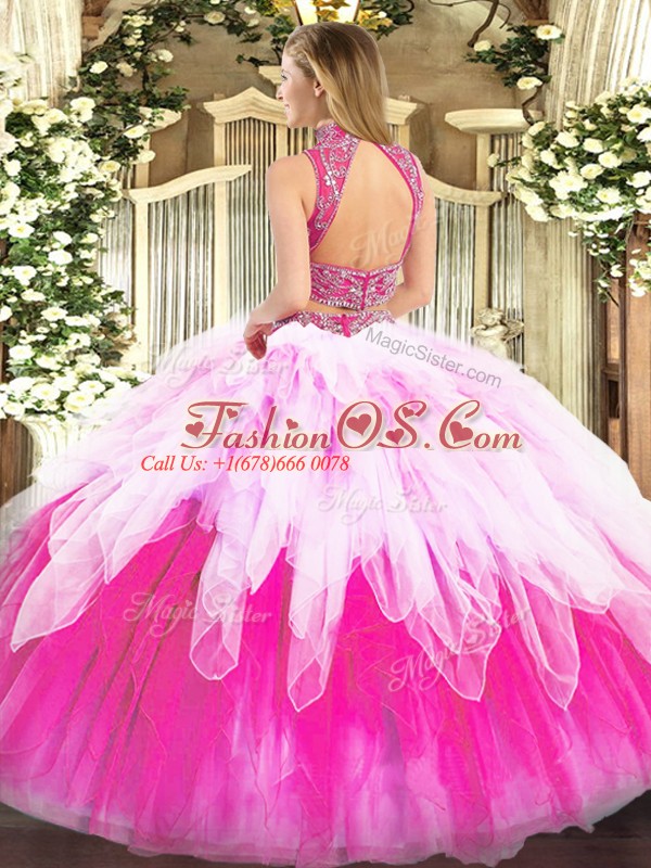 Glittering Multi-color Tulle Backless Sweet 16 Dresses Sleeveless Floor Length Beading and Ruffles