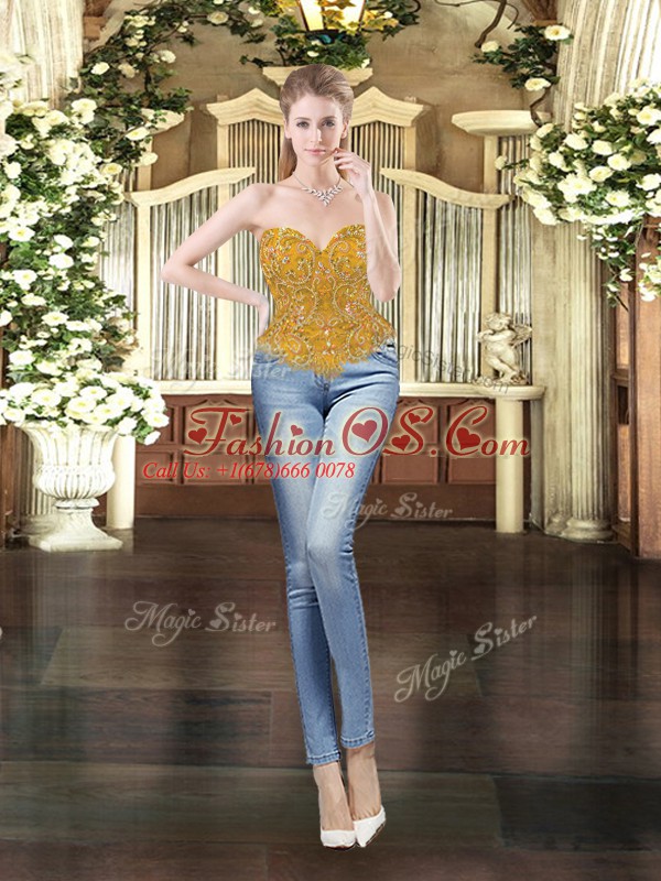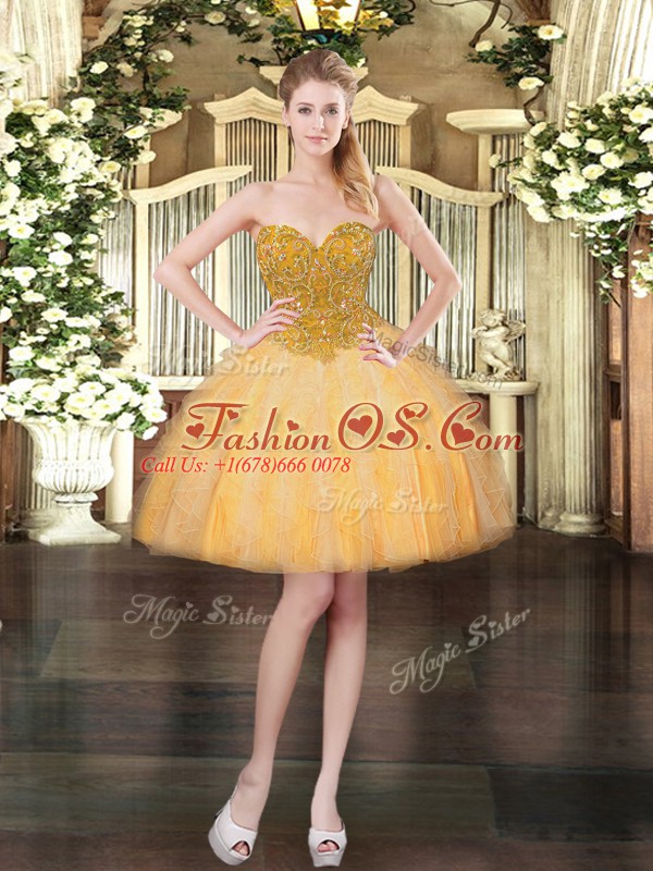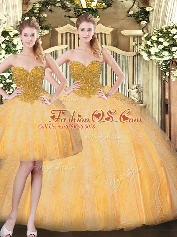 Hot Selling Beading and Ruffles Quinceanera Dresses Gold Lace Up Sleeveless Floor Length