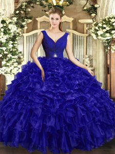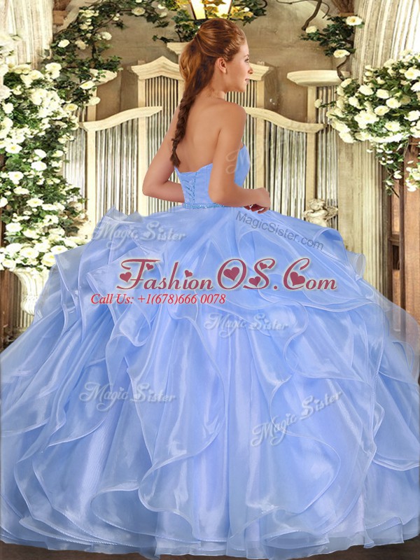 High End Aqua Blue Sleeveless Organza Lace Up Quinceanera Gown for Military Ball and Sweet 16 and Quinceanera