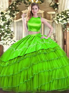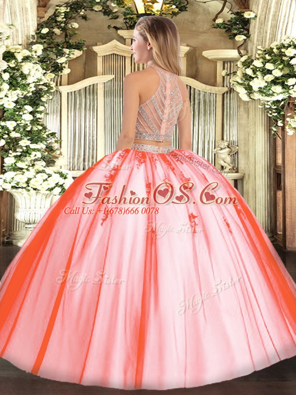 Fashion Floor Length Two Pieces Sleeveless Rose Pink Vestidos de Quinceanera Zipper