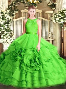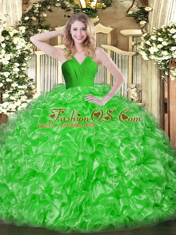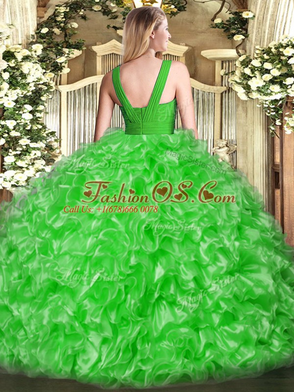 Customized Green Sleeveless Floor Length Ruffles Zipper Quinceanera Gowns