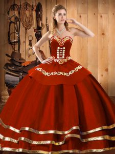 Sleeveless Embroidery Lace Up Quince Ball Gowns with Multi-color Sweep Train