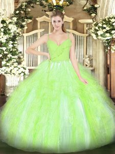 Traditional Sleeveless Floor Length Beading and Ruffles Zipper Ball Gown Prom Dress with Multi-color