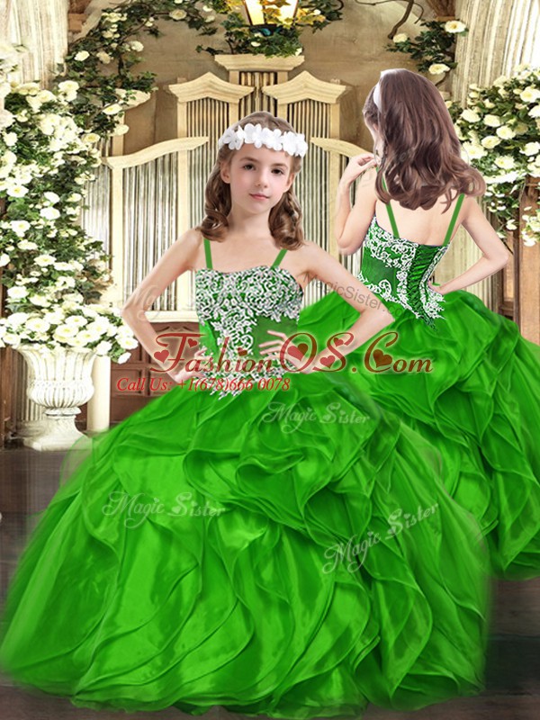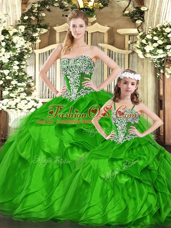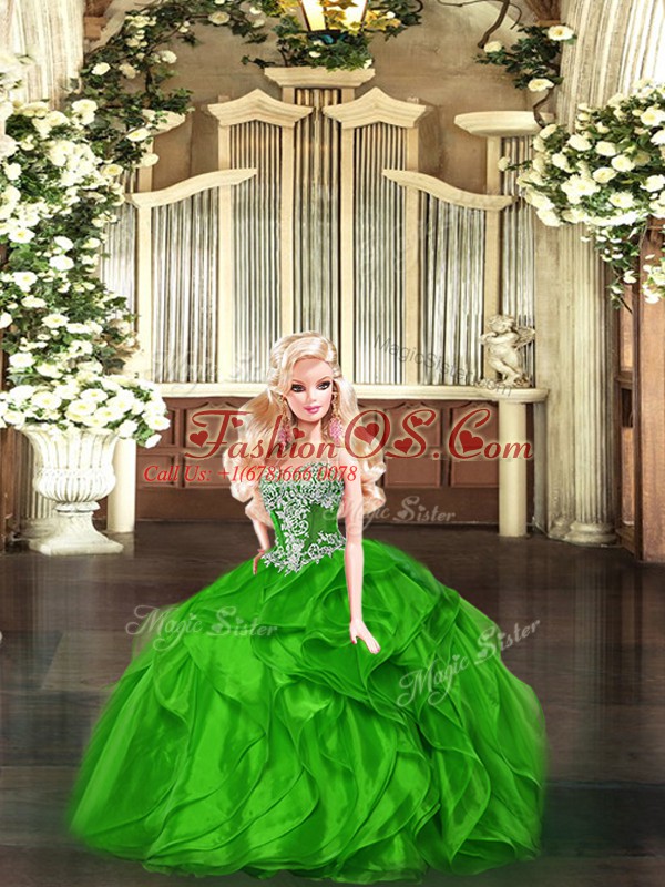 Fancy Beading and Ruffles Vestidos de Quinceanera Green Lace Up Sleeveless Floor Length