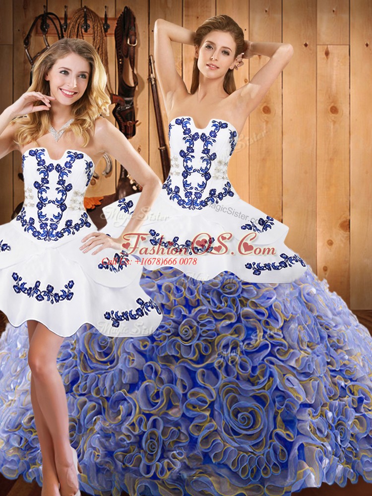 Edgy With Train Multi-color Quince Ball Gowns Satin and Fabric With Rolling Flowers Sweep Train Sleeveless Embroidery