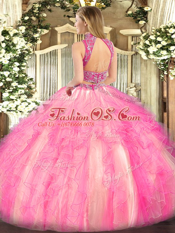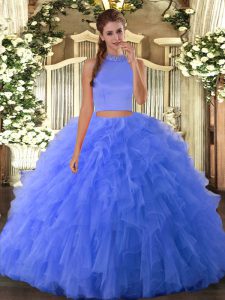 Great Floor Length Lilac Quinceanera Gown High-neck Sleeveless Backless