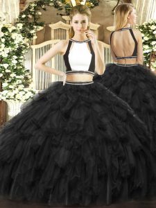 Captivating Scoop Sleeveless Organza Sweet 16 Dresses Ruffles Clasp Handle