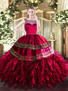Discount Sleeveless Embroidery and Ruffled Layers Lace Up Sweet 16 Dress with Turquoise Sweep Train