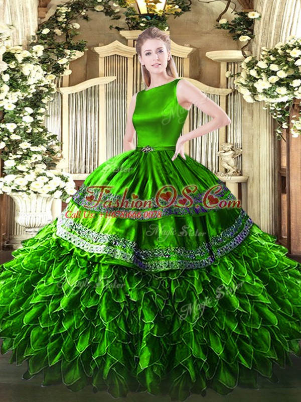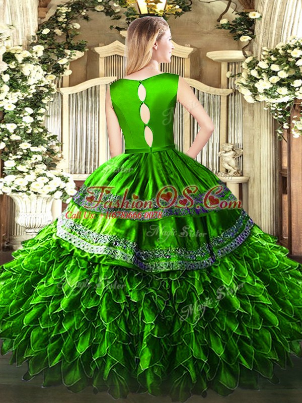 Suitable Scoop Sleeveless Clasp Handle Ball Gown Prom Dress Green Satin and Organza