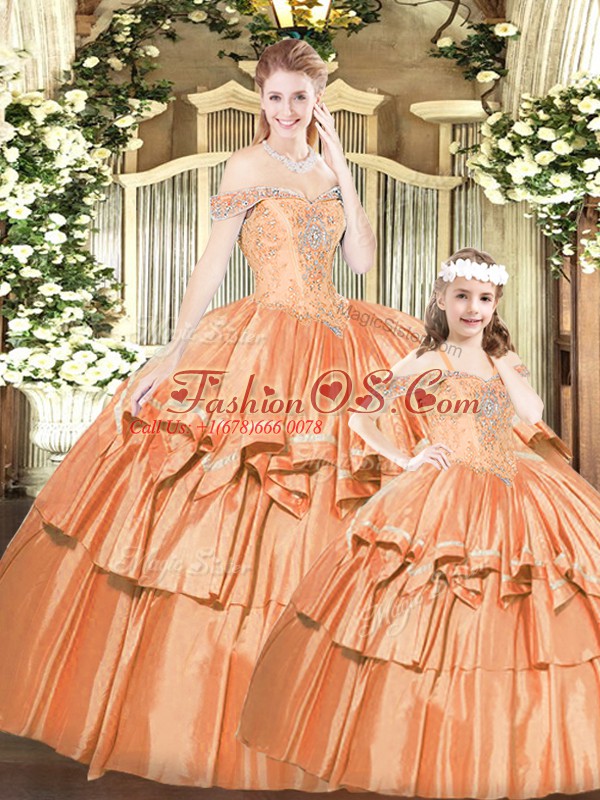 Sumptuous Rust Red Off The Shoulder Neckline Beading and Ruffles 15 Quinceanera Dress Sleeveless Lace Up
