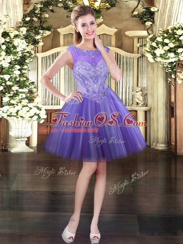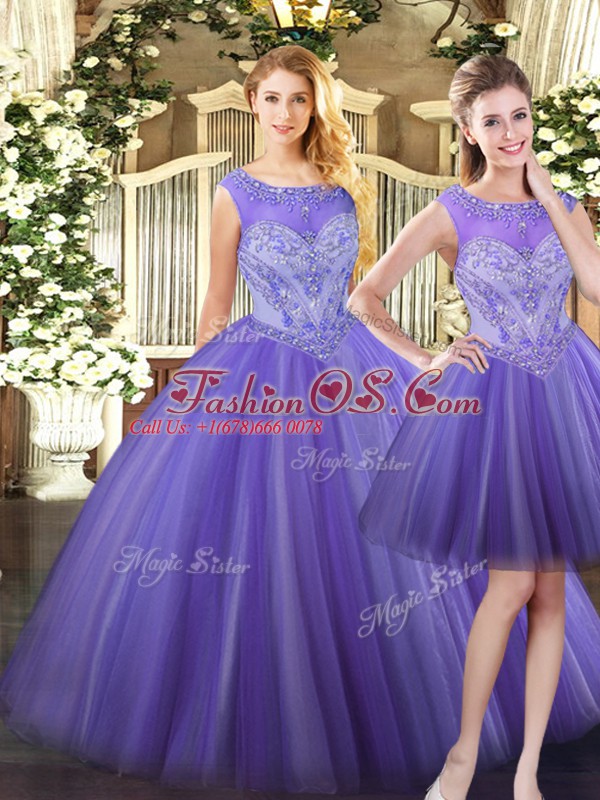 Stunning Lavender Quinceanera Dresses Military Ball and Sweet 16 and Quinceanera with Beading Scoop Sleeveless Zipper