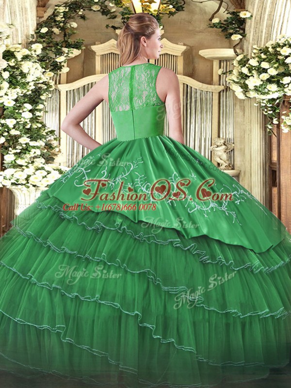 Chic Embroidery and Ruffled Layers 15th Birthday Dress Brown Zipper Sleeveless Floor Length