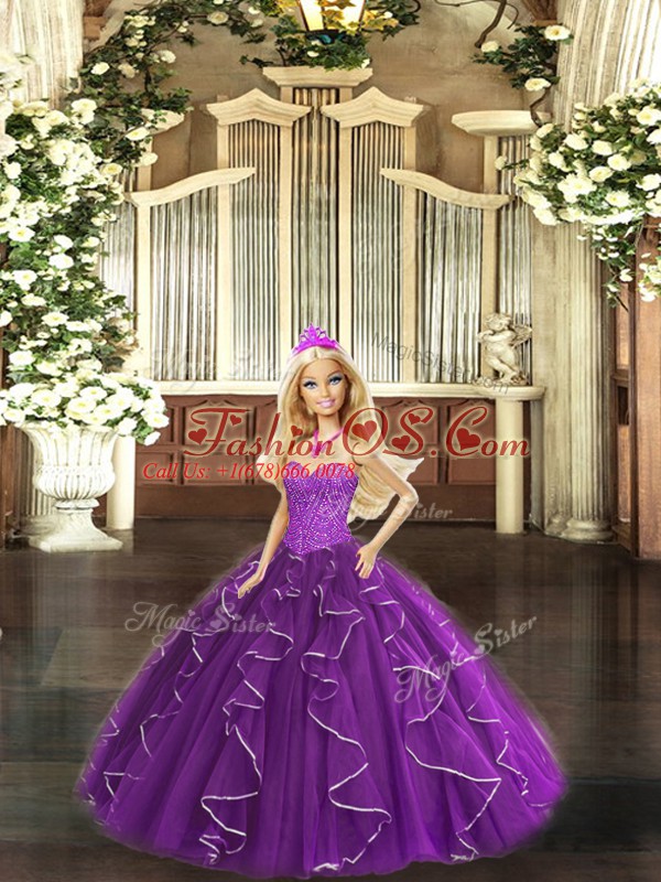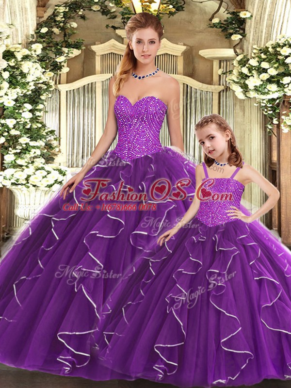 Sexy Sweetheart Sleeveless Lace Up 15 Quinceanera Dress Purple Organza