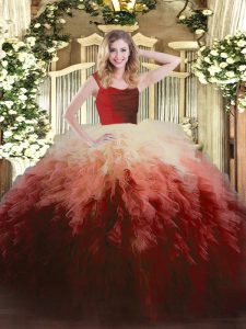 Smart Organza Sleeveless Floor Length Sweet 16 Quinceanera Dress and Beading and Ruffled Layers