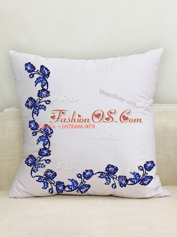 Flare Floor Length Blue Quinceanera Gown Satin and Organza Sleeveless Embroidery and Ruffles