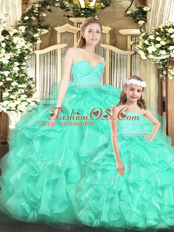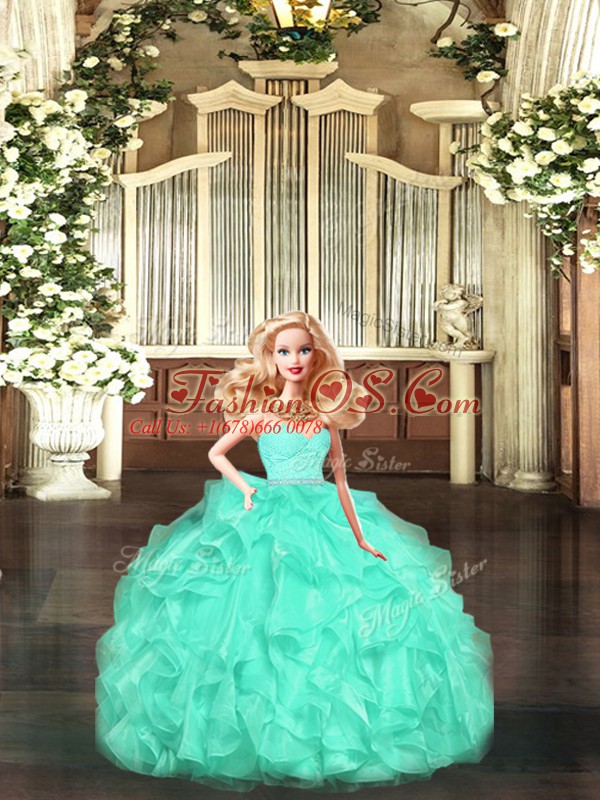 Floor Length Ball Gowns Sleeveless Apple Green Quince Ball Gowns Lace Up