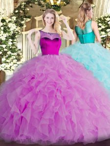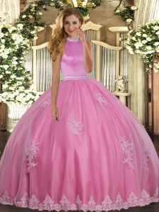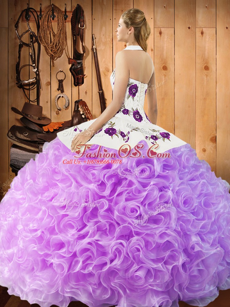 Halter Top Sleeveless Quinceanera Dress Floor Length Embroidery Lavender Fabric With Rolling Flowers