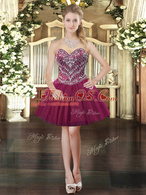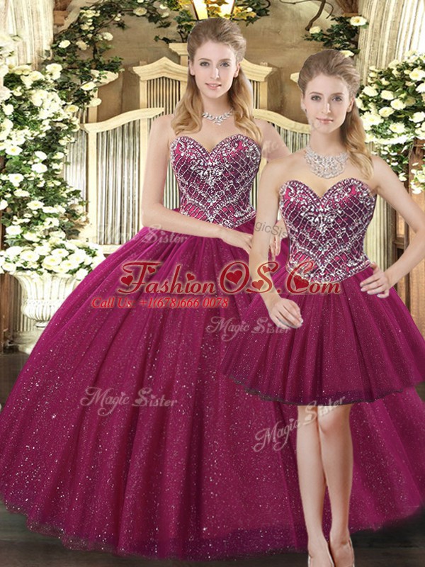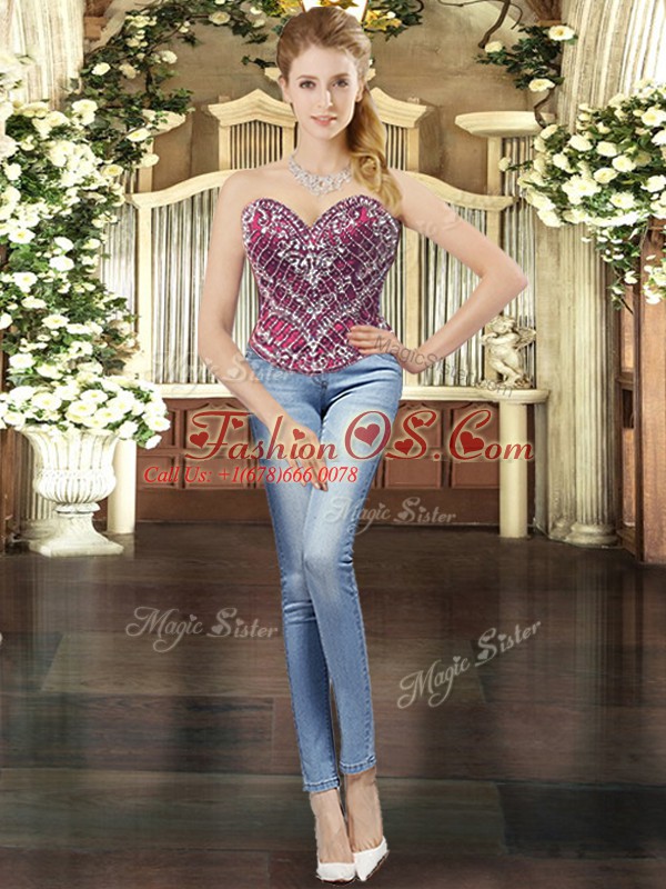 Fuchsia Lace Up Sweet 16 Dresses Beading Sleeveless Floor Length