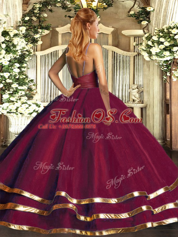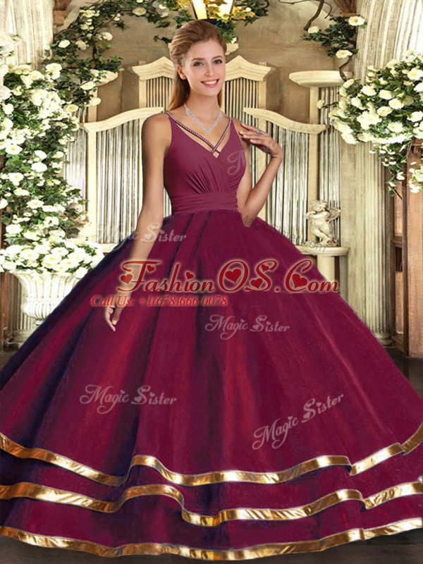 Burgundy Sleeveless Organza Backless Quinceanera Gowns for Sweet 16 and Quinceanera
