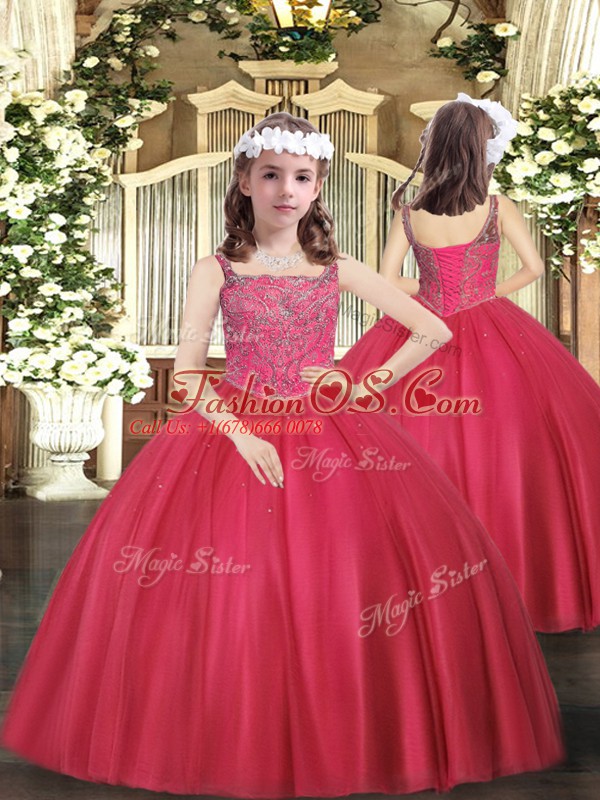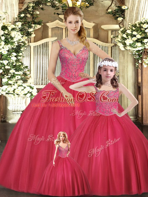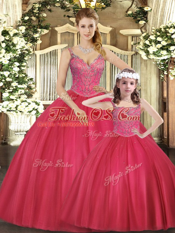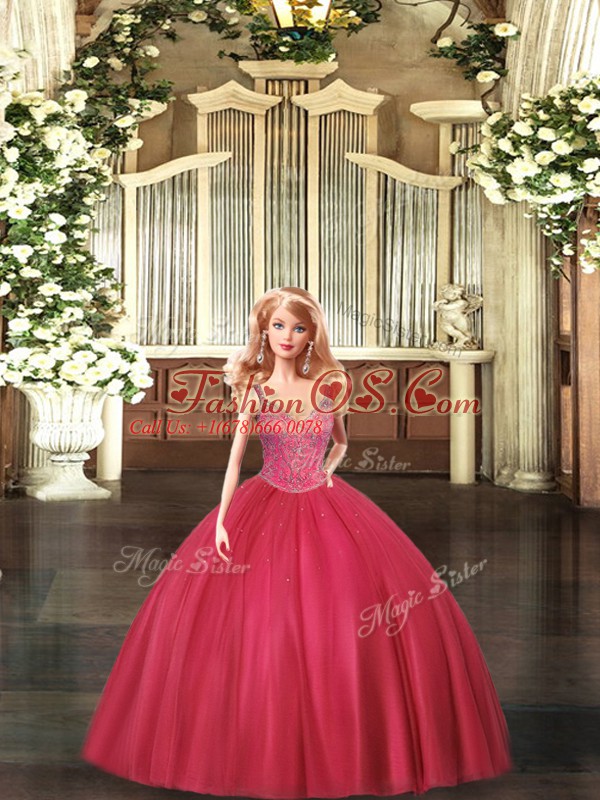 Fantastic Hot Pink Lace Up Quinceanera Dresses Beading Sleeveless Floor Length