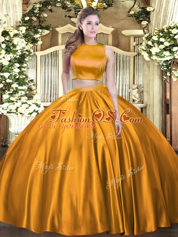 Customized Orange Sweet 16 Quinceanera Dress Military Ball and Sweet 16 and Quinceanera with Ruching High-neck Sleeveless Criss Cross