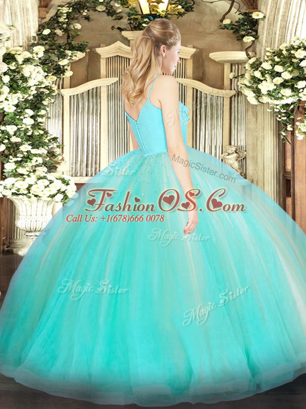 Comfortable Ball Gowns Quinceanera Dress Yellow Green Spaghetti Straps Tulle Sleeveless Floor Length Zipper