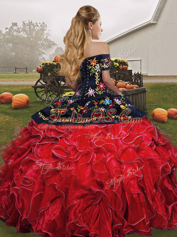 Top Selling Off The Shoulder Sleeveless Organza Sweet 16 Dress Embroidery and Ruffles Lace Up