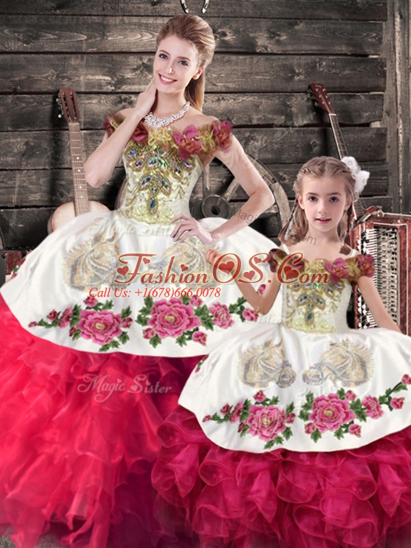 Colorful Pink And White Sleeveless Organza Lace Up Quince Ball Gowns for Sweet 16 and Quinceanera