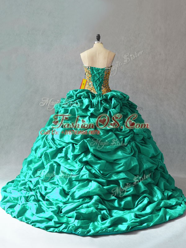 Noble Lace Up Quinceanera Gowns Turquoise for Sweet 16 and Quinceanera with Beading and Pick Ups Brush Train