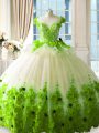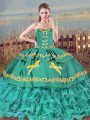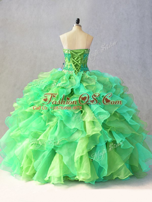 Custom Design Sweetheart Sleeveless Quince Ball Gowns Floor Length Beading and Ruffles Multi-color Organza