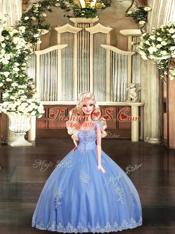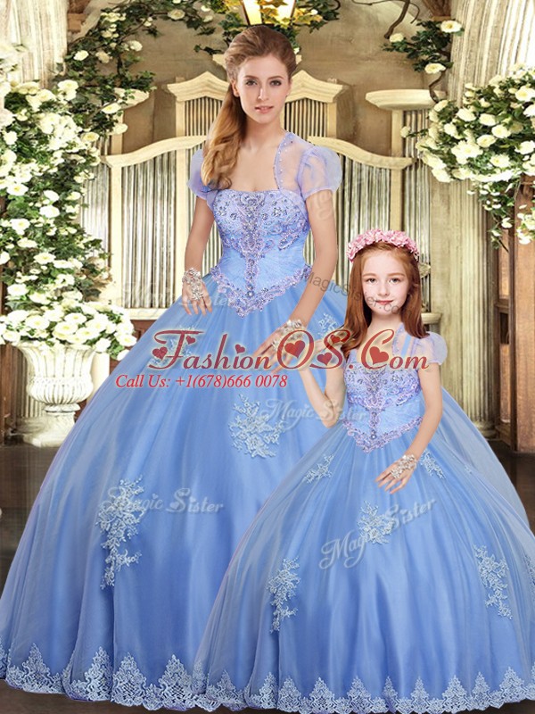 Cute Light Blue Sleeveless Beading and Appliques Floor Length Quince Ball Gowns
