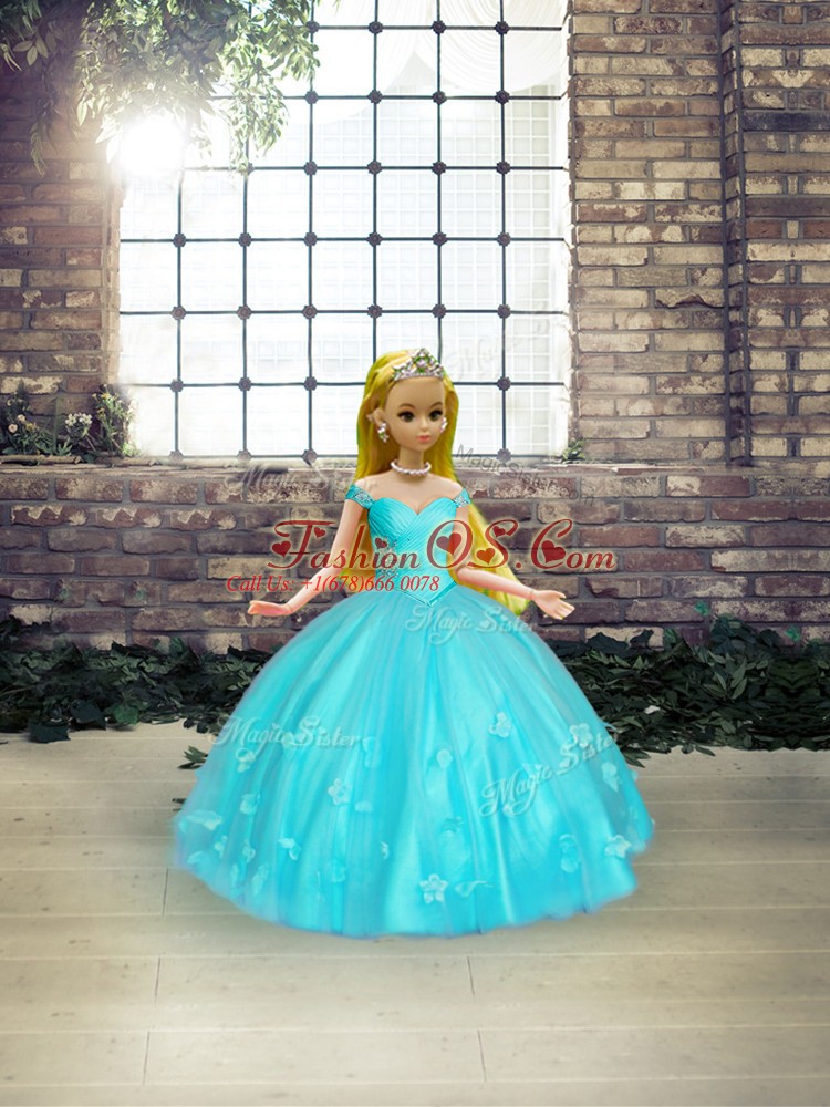 Aqua Blue Off The Shoulder Lace Up Beading and Appliques Quinceanera Gowns Sleeveless