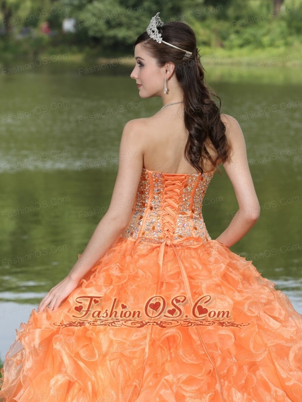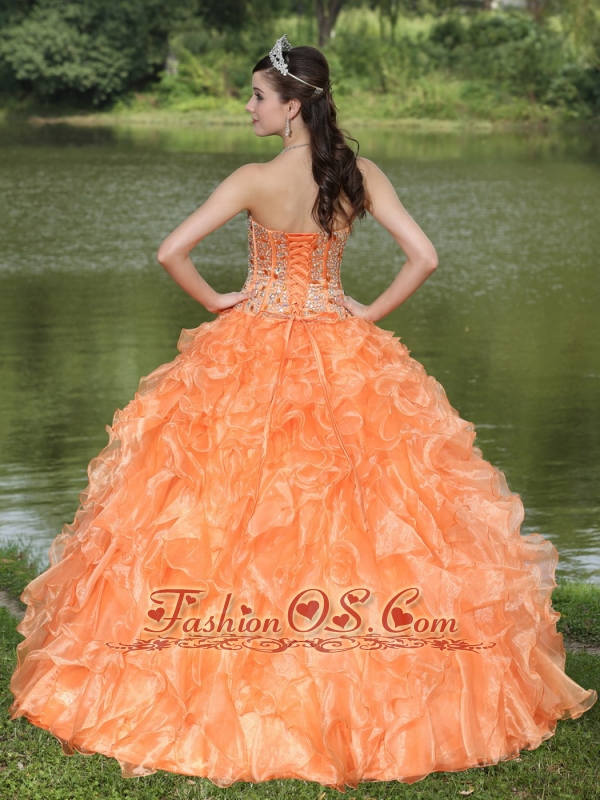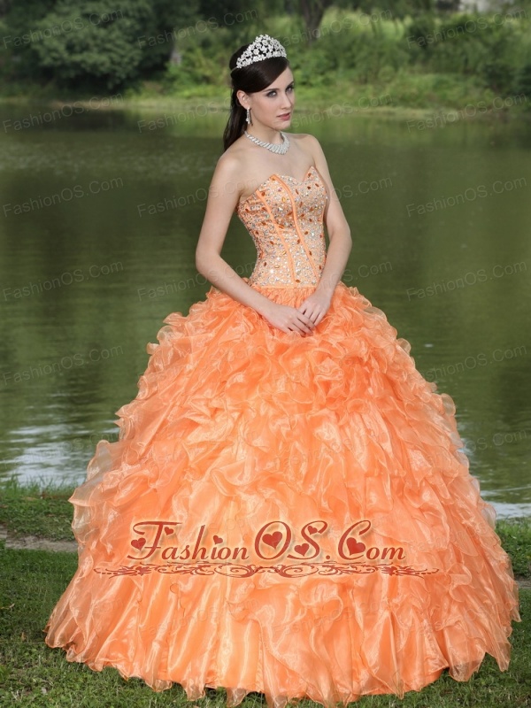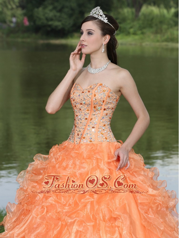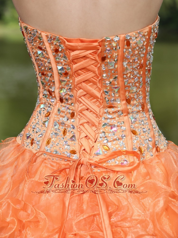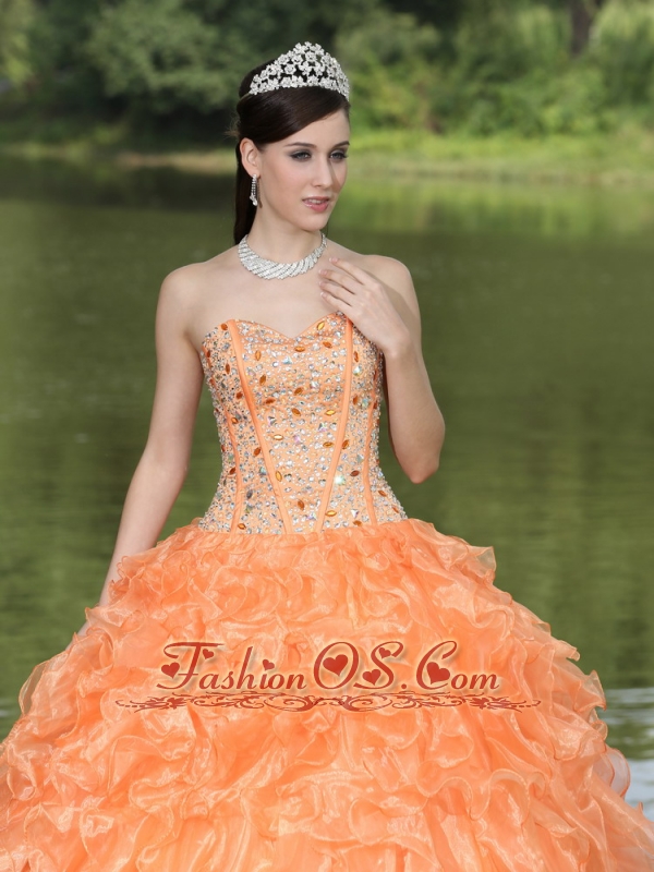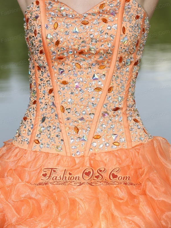 Orange Quinceanera Dress Clearance With Sweetheart Beaded Ruffles Layered Decorate Organza