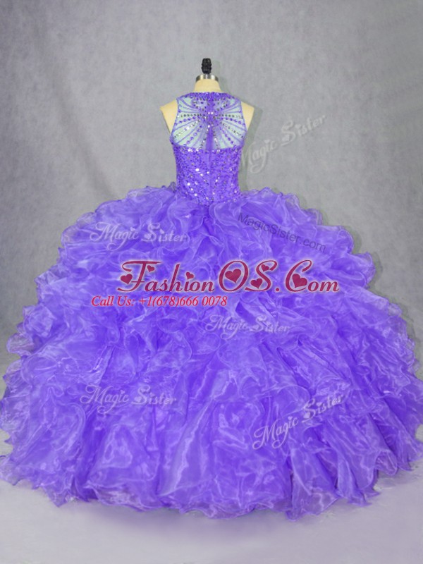 Graceful Sleeveless Floor Length Beading Zipper Sweet 16 Dress with Purple