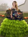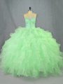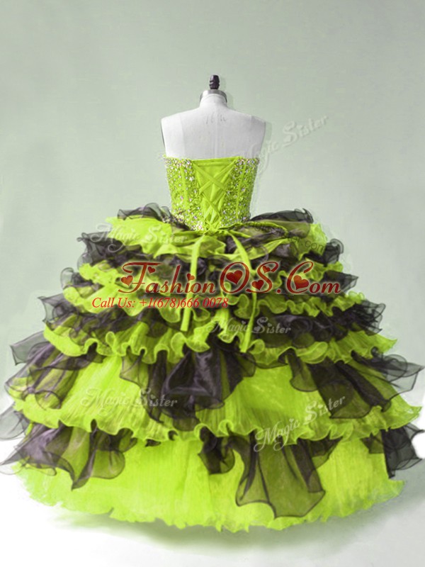 Yellow Green Organza Lace Up Quinceanera Gown Sleeveless Beading