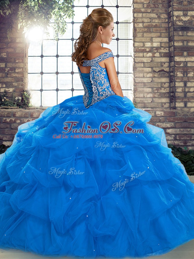 Off The Shoulder Sleeveless Vestidos de Quinceanera Brush Train Beading and Pick Ups Green Tulle