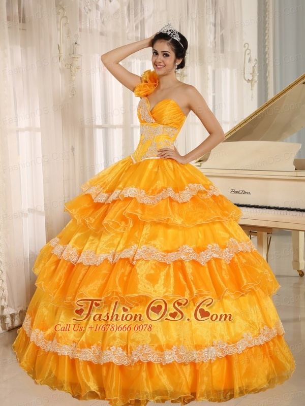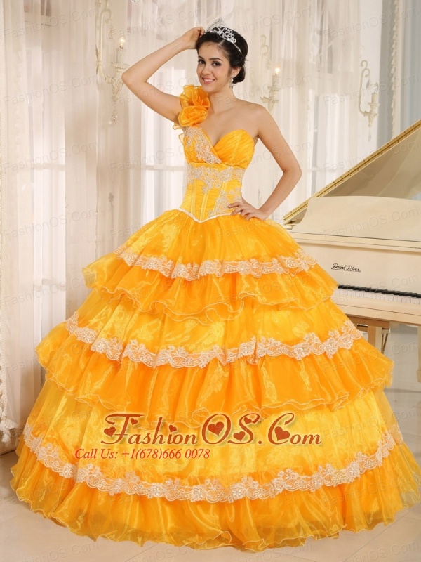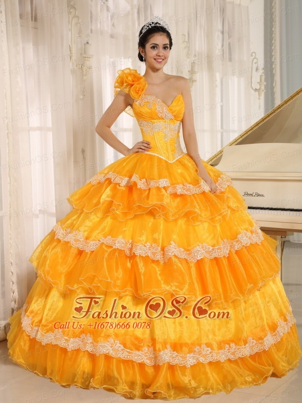 Hand Made Flowers Decorate One Shoulder Appliques and Ruffled Layers For 2013 Quinceanera In Antioch California